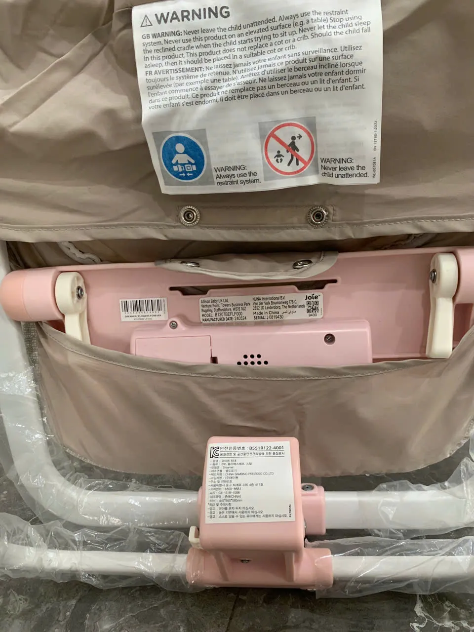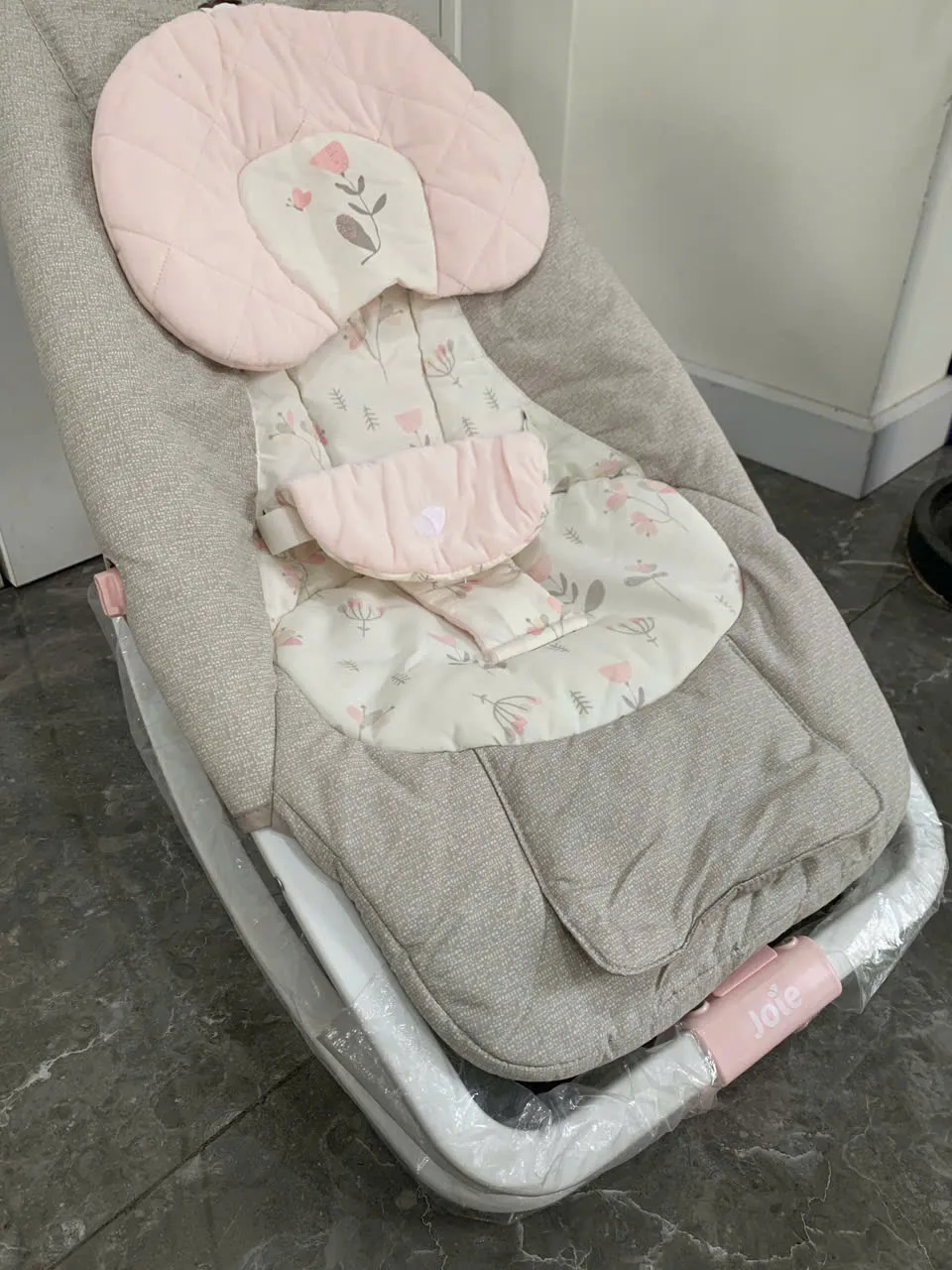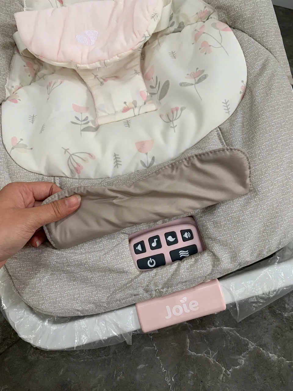 Ghế rung em bé Joie hoạ tiết hoa màu hồng phối xám ( sơ sinh đến 15kg )
